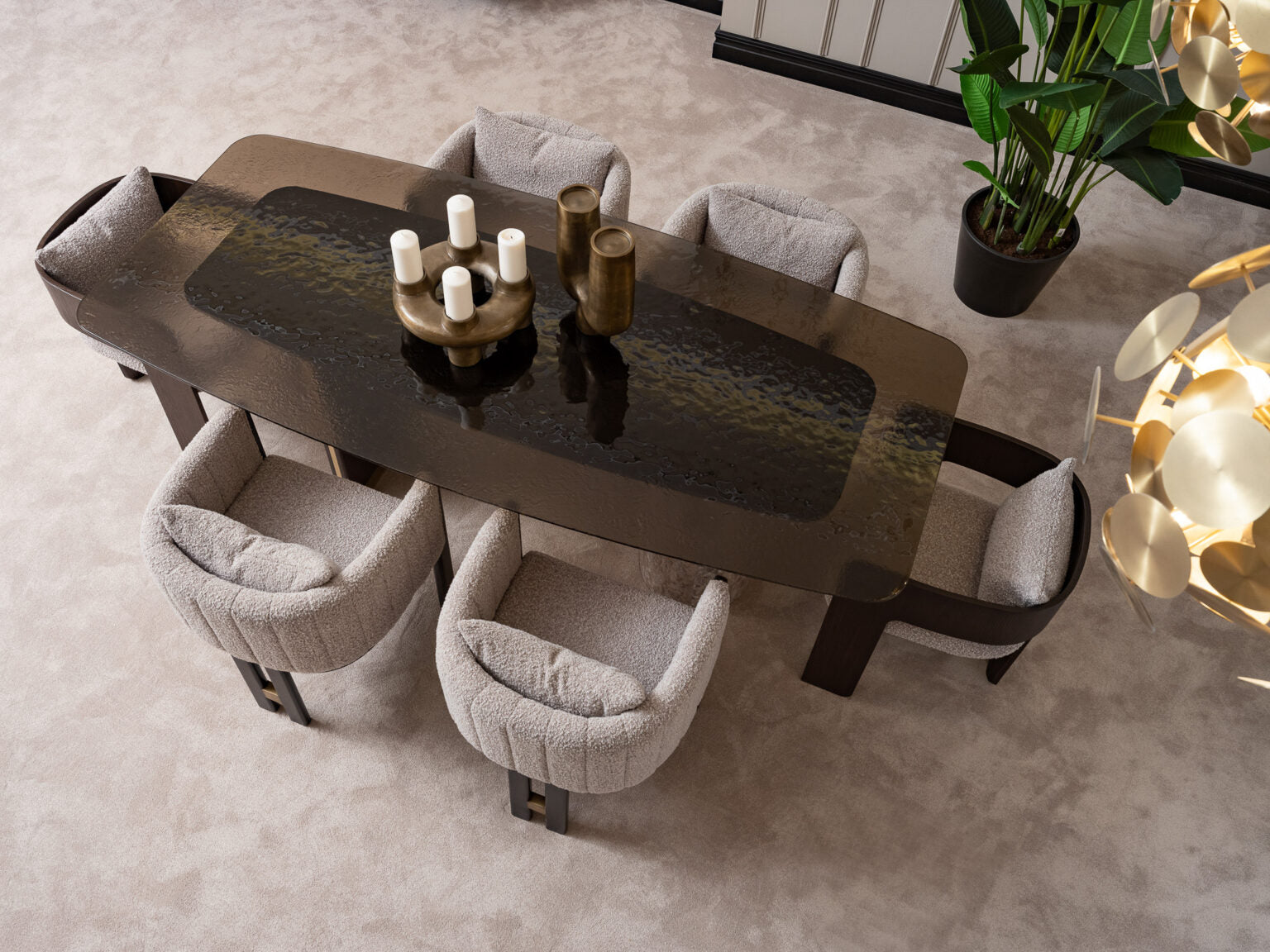 MARMO Étkezőasztal Travertin lábbal, Üveg asztallappal